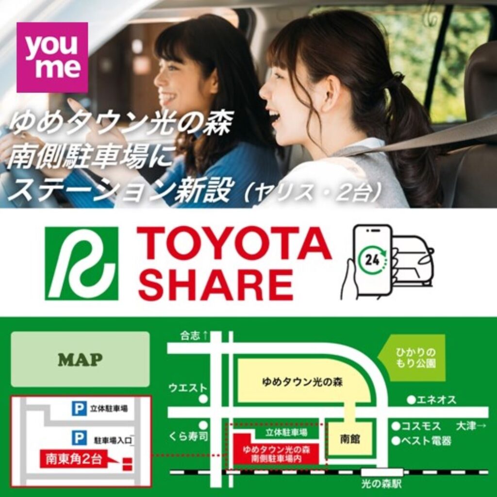 \トヨタシェア新設情報🔔/ゆめタウン光の森にトヨタシェアステーションOPEN!